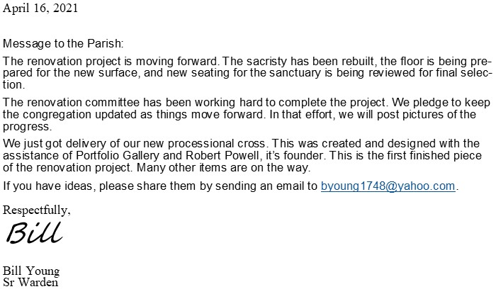 Letter from Bill Young Sr Warden 04-16-21 (PHOTO VIEW)