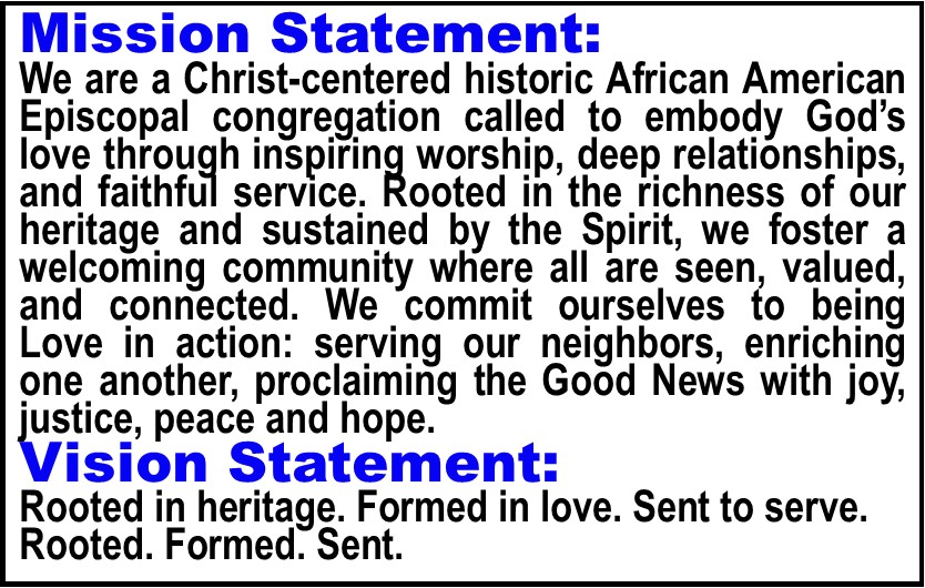 Our Sunday and Tuesday Holy Eucharist services are led by our Rector or a guest priest. On Sundays we worship at 9:00AM which includes music and is led by the All Saints and Ascension choir. Worshipers are encouraged to sing along. We sing from “The Hymnal 1982” (traditional hymn book), the “Lift Every Voice and Sing II” (LEVAS) African American Hymnal, and the “Lift Up Your Hearts” hymnal. There is no music at our Tuesday noonday Eucharist. PLEASE NOTE THAT WORSHIP SERVICE TIME CAN SOMETIMES CHANGE, SO BE SURE TO CHECK OUR CURRENT SCHEDULE FOR UPDATES.